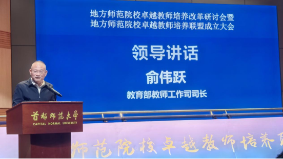 教育部教师工作司司长俞伟跃在讲话中强调,教师是教育发展的第一资源,加强教师队伍建设是建设教育强国最重要的基础工作。要立足“十五五”、面向2035,坚持调结构与提质量并重,整体谋划未来教师培养的能力框架、培养模式、体制机制,推进系统性的改革创新。一要打破知识本位,构建能力导向的课程新体系;二要强化情境融合,建立全程贯穿的实践新机制;三要推动学科交叉与供需动态适配,重组高度适配的专业新结构;四要强化数字赋能,探索人机协同的教学新范式;五要扩大开放协同,构建多元参与的育人新格局。通过各方共同努力,重构教师教育新体系、重塑教师培养新格局,以高质量的教师教育体系支撑教育大国向强国的系统跃升。北京市委教育工委副书记、市教委主任李奕介绍了面向未来的卓越教师培养改革总体思考。